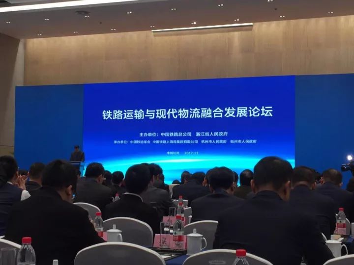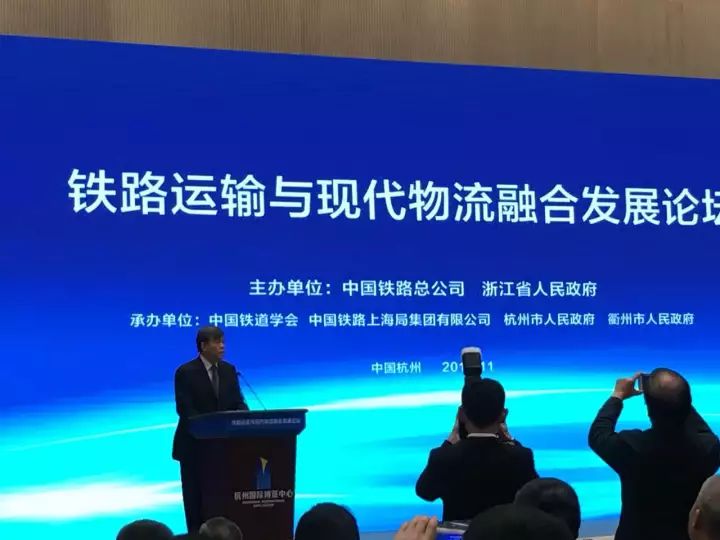 11月23日至24日,由中国铁路总公司、浙江省人民政府共同举办的铁路运输与现代物流融合发展论坛在杭州举行,来自国家有关部门,部分重点城市、高等院校、央企、物流企业,以及中国铁路总公司、浙江省相关部门和企业的嘉宾应邀出席,这是近年来我国规模最大、层次最高、内容最丰富的铁路物流行业高水平论坛。中国铁路总公司党组书记、总经理陆东福,浙江省委副书记、省长袁家军出席论坛开幕式并致辞,中国铁路总公司党组成员、副总经理李文新主持,浙江省副省长高兴夫出席。