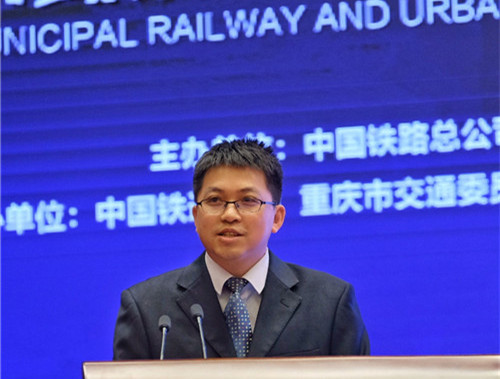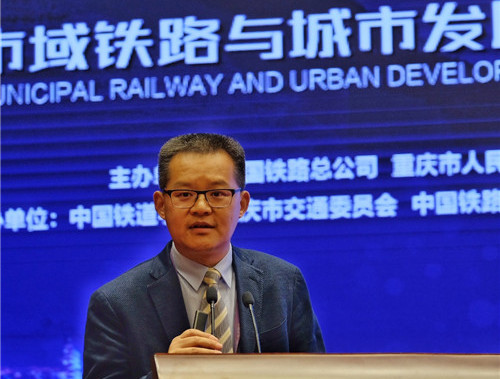重庆市交通委员会副主任汪钦琳作题为《重庆市利用铁路开行公交化列车的探索与思考》专题报告