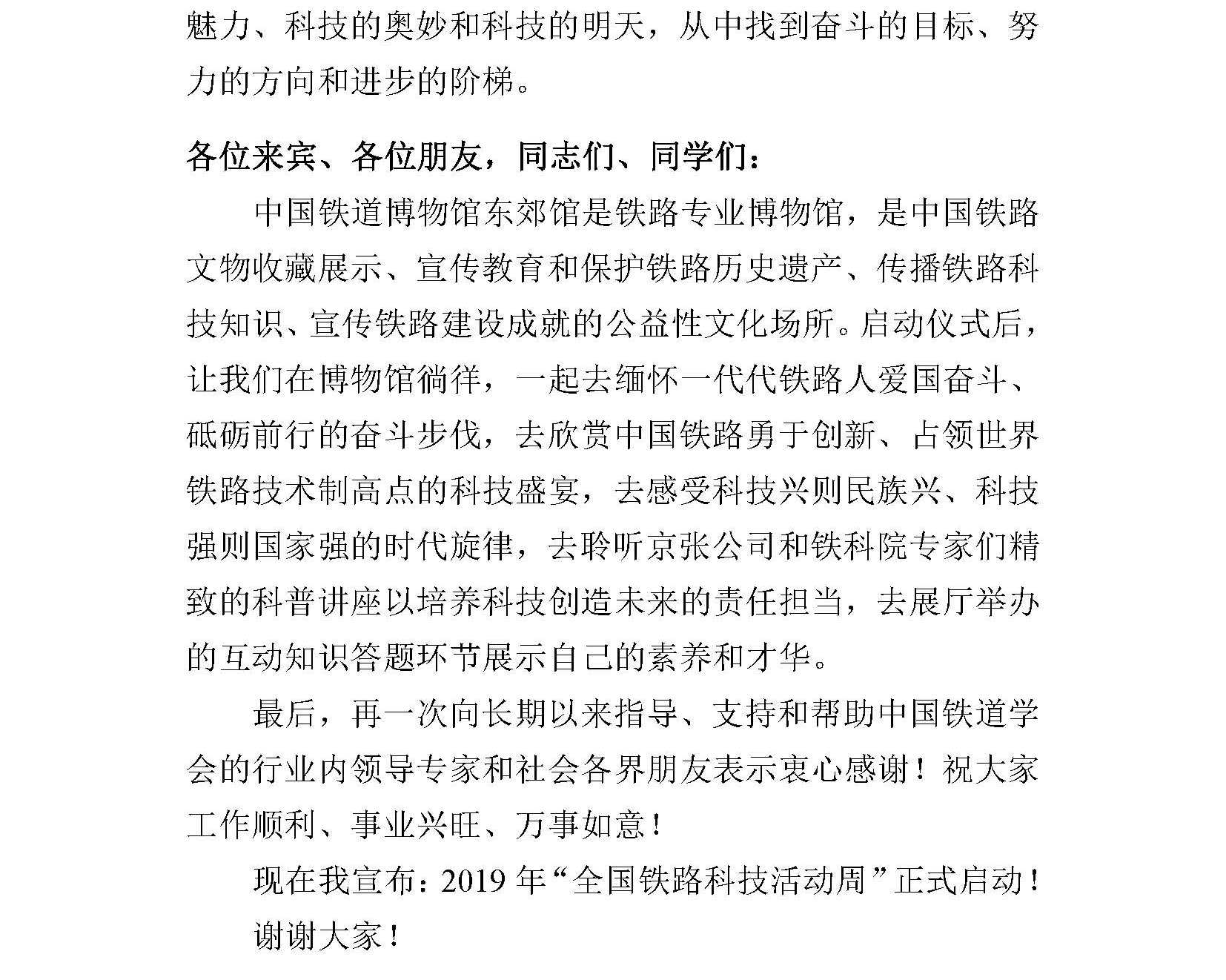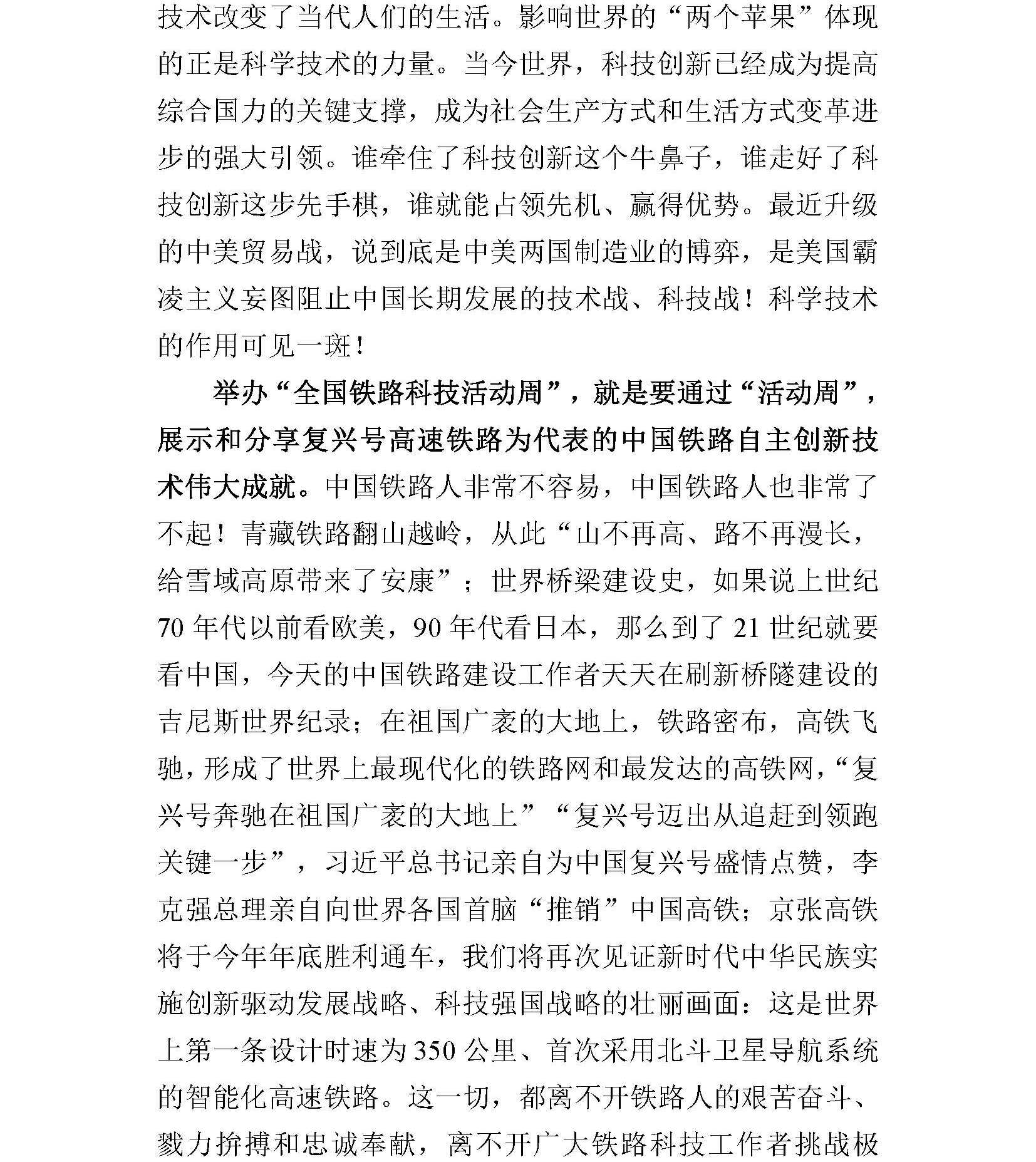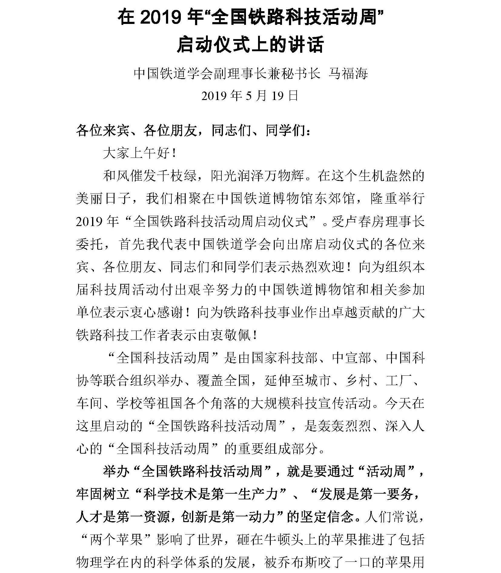 马福海在2019年“全国铁路科技活动周” 启动仪式上的讲话