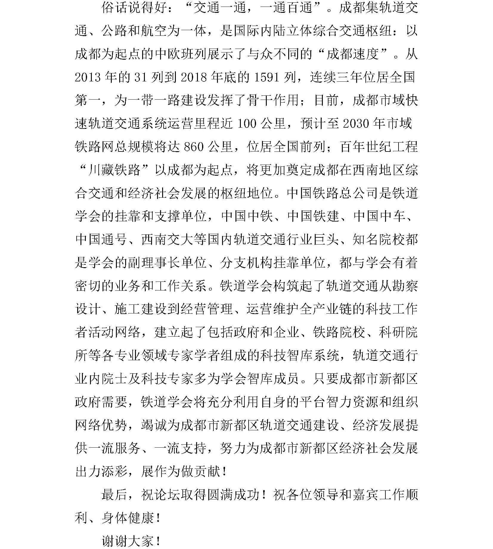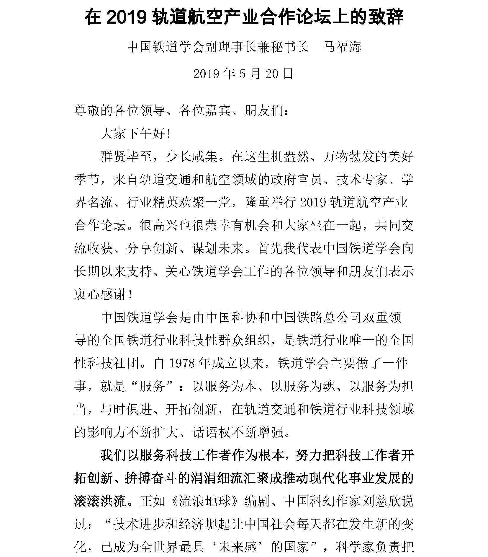 马福海在2019轨道航空产业合作论坛上的致辞