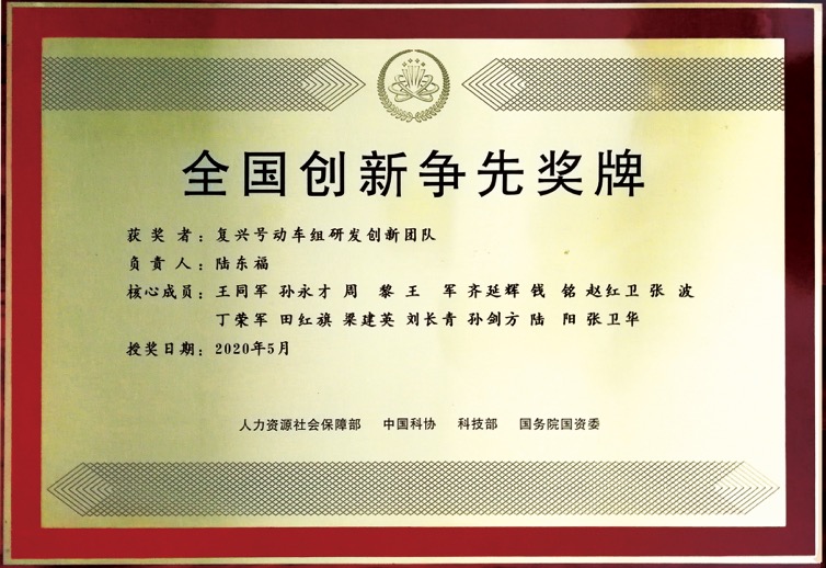 2020年5月30日,第二届全国创新争先奖评选结果揭晓,“复兴号动车组研发创新团队”荣获全国创新争先奖。
