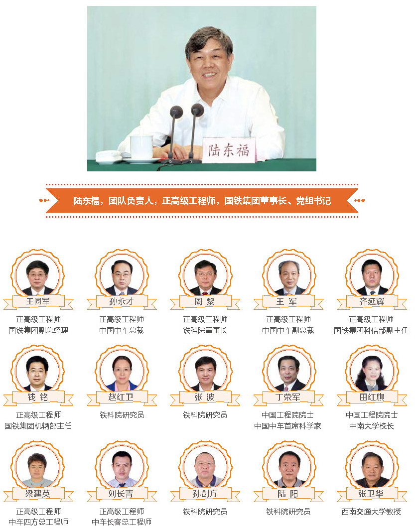 由陆东福同志领军,来自行业内企业、院校和科研院所的15名科技专家为核心骨干、550名铁路科技工作者组成的“复兴号动车组研发创新团队”是铁路科技创新的国家队。创新团队的获奖,是党中央、国务院、中国科技界和全国人民对中国国家铁路集团有限公司主导的铁道行业科技进步事业的高度褒奖,是对中国铁路改革发展和科技自主创新成就的充分肯定,也是广大铁路科技工作者科技报国、创新为民、拼搏奋斗的光辉见证。