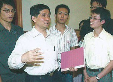 北京交通大学校长宁滨与科研人员进行交流                                                              中国工程院副院长、中国工程院院士田红旗(右一)