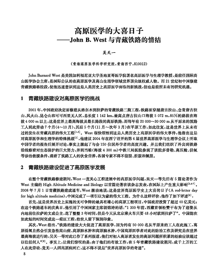 吴天一在青藏铁路运营十周年学术研讨会上的报告