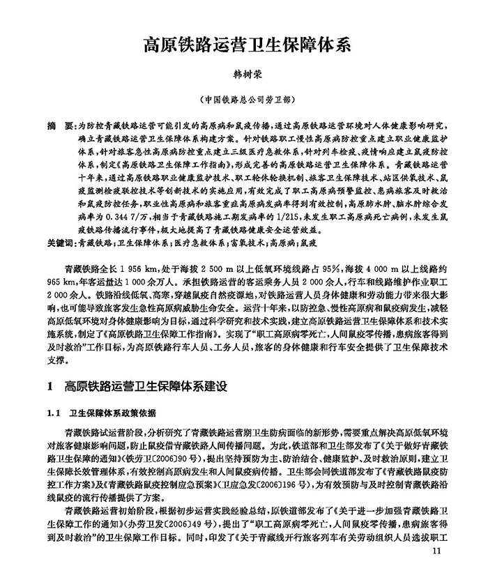 韩树荣在青藏铁路运营十周年学术研讨会上的报告