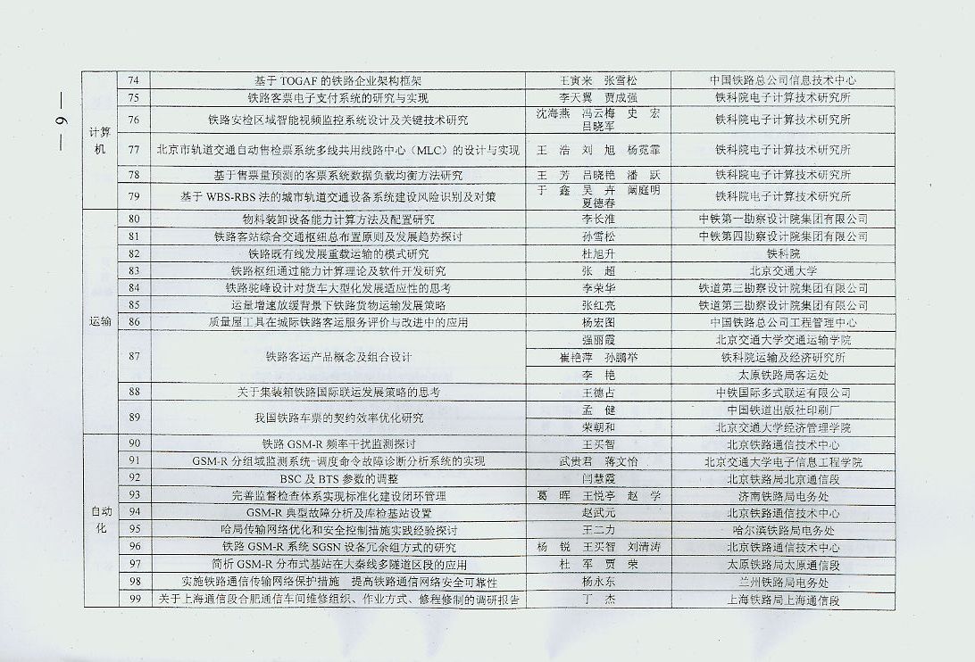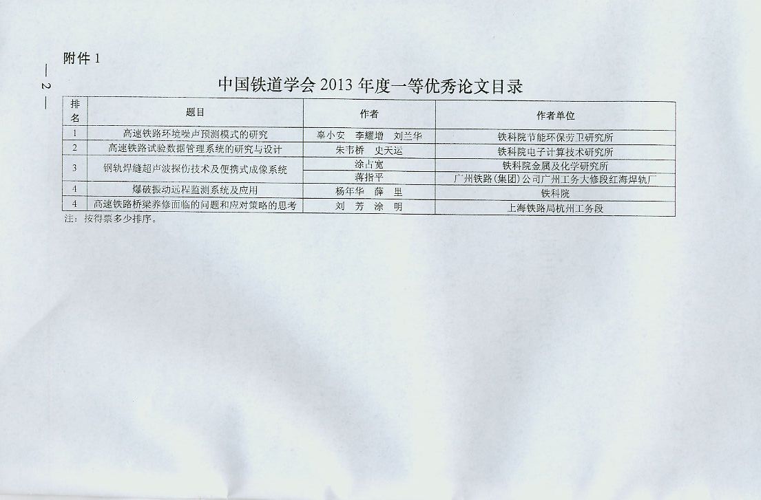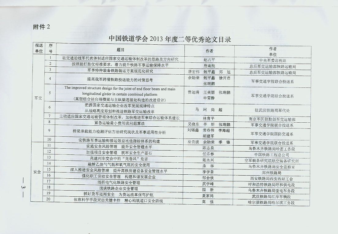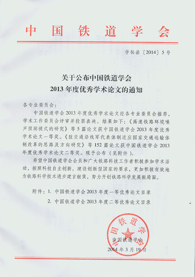 中国铁道学会2013年度优秀论文